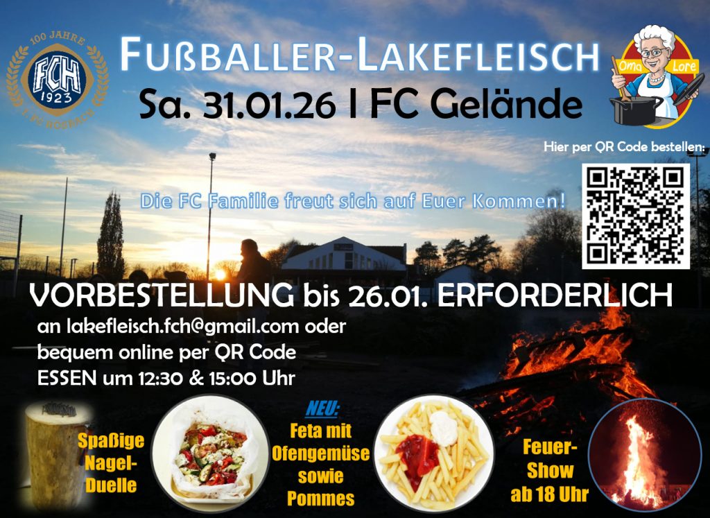 Unser traditionelles Lakefleich-Essen der Fußball- und Jugendabteilung findet in diesem Jahr am Sa., dem 31. Januar 2026 am Sportgelände unseres FC Hösbach statt. Wir bitten um Vorbestellungen unter folgendem Link: https://forms.cloud.microsoft/r/FuN1jhCta8